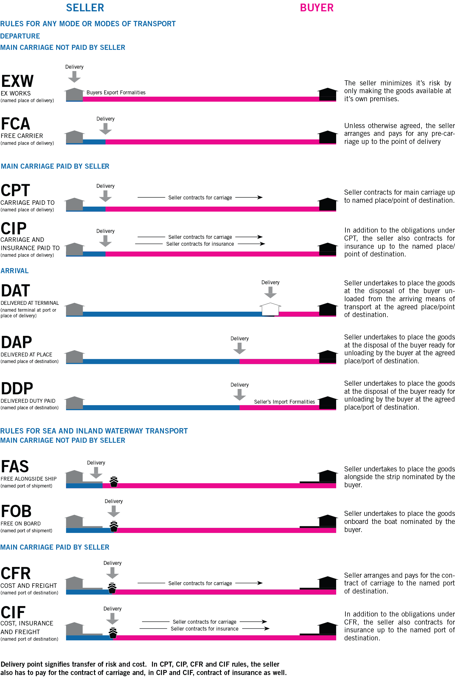 INCOTERMS: International Rules for the Interpretation of Trade Terms – currently comprises 13 terms for foreign trade contracts, complied by ICC